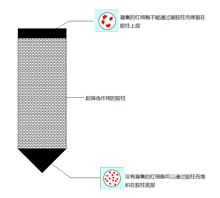 微柱凝膠技術是液相技術與固相技術的巧妙組合,是凝膠過濾技術、離心技術、紅細胞凝集試驗技術(特異性抗體抗原反應)的完美結合。通過對凝膠種類的選擇和凝 膠濃度的調節(jié)來控制分子篩孔徑大小,使分子篩只允許游離紅細胞通過,從而達到分辯凝集紅細胞和非凝集紅細胞的目的。